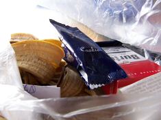 Untypischer Gastrest. Plastik, Bio, Papier.